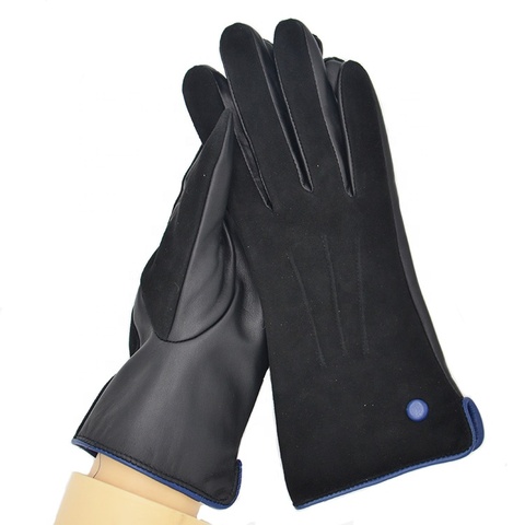 Black Sheepskin Suede Leather Gloves for Women Casual Daily Use with Touch Screen Feature for Winter Outdoor Scenes