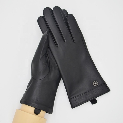 High Quality Customizable Durable Black Goat Skin Leather Gloves for Ladies for Cycling and Touch Screens Classic Texture