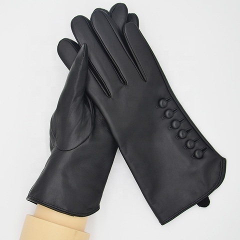Hot Sale Women's Genuine Sheepskin Leather Gloves Button Fashionable New Style for Daily Cycling Fishing Touchscreen Compatible
